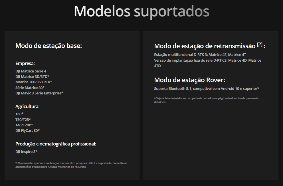A nova Estação Multifuncional D-RTK 3 integra antenas de alto desempenho e módulos receptores capazes de rastrear e resolver dados dos principais sistemas globais de navegação por satélite, além de suportar múltiplos links de transmissão de dados. Com esses recursos excepcionais, ela pode servir como uma estação base para fornecer posicionamento em nível centimétrico para vários drones simultaneamente ou estender o alcance operacional dos drones e do DJI Dock 3 no modo estação retransmissora. Além disso, o novo modo estação rover, combinado com o aplicativo DJI Enterprise e o DJI Terra, oferece uma solução completa para aplicações de levantamento aéreo de alta precisão, garantindo uma operação segura e precisa.