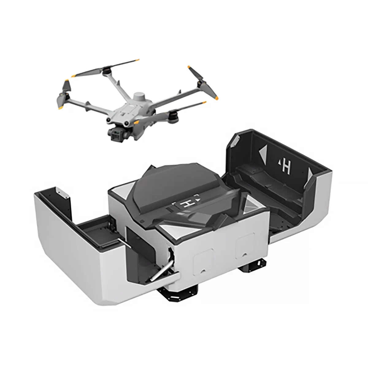 Com a tecnologia de reconhecimento de imagem de última geração, a aeronave identifica com precisão os marcadores de posicionamento na plataforma de pouso. Além disso, o novo design de centralização de rampa deslizante da plataforma de pouso facilita ainda mais o pouso preciso.
